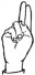 На ћирилици написано УНА ГРИЈАК састоји се из 9 слова [?]. Исписано ћириличном једноручном азбуком за глувонеме: